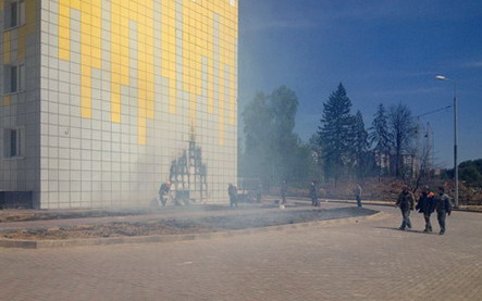 В субботу 14 мая крепкий ветер задул горящий торф под пеноплексовую обшивку здания. Так как фасад здания вентилируемый, огонь быстро разгорелся и пошёл вверх, разрушая плитку.