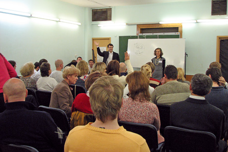 — Ольга: Программа выстроена так, что каждый участник становится тренером и для себя, и для других. Участник получает конкретную и ценную информацию о своих ораторских достоинствах и о тех моментах, над которыми ему следует работать. Сильные стороны участников становятся образцом для подражания; учатся не только на собственных оценках, но и чужих. Тренинг ведут два тренера — это повышает качество занятий за счет квалифицированной работы с каждым участником. На тренинге не надо ничего конспектировать, вся теория подается тренерами в виде увлекательных демонстраций-спектаклей, а участники получают красочные, оформленные художником раздаточные материалы. И что ещё важно — на наших занятиях создается удивительно добрая, благожелательная и очень веселая атмосфера, в которой хочется рисковать, выходить за рамки своего опыта. И намного легче раскрыть свой ораторский потенциал!