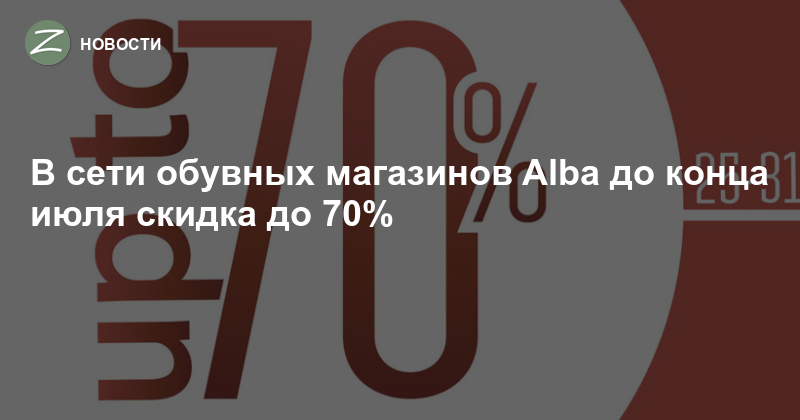 Только с 25.07.2016 по 31.07.2016 скидка до 70% на весь ассортимент в сети салонов обуви и аксессуаров ALBA!