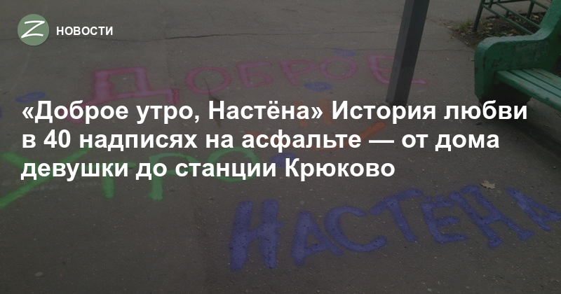 Молодой человек решил поднять настроение девушке и написал ей тёплые слова и комплименты на всём пути от корпуса 1005, где она живет, до платформы №1 на станции Крюково. Надписи на асфальте появились ночью неделю назад, ночью или ранним утром, рассказал Zelenograd.ru автор фотографий Кирилл Павлов. Он сфотографировал и опубликовал надписи в группе «Якорь» ВКонтакте.