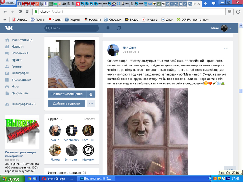 Затем Корта отвезли в следственный комитет и только там предъявили ему распечатки с его личной страницы Вконтакте, в частности, картинку с «Пушкиным». Кстати, схожесть персонажа с Пушкиным Корт и его адвокат пробовали оспорить, также как и экспертизу следствия.