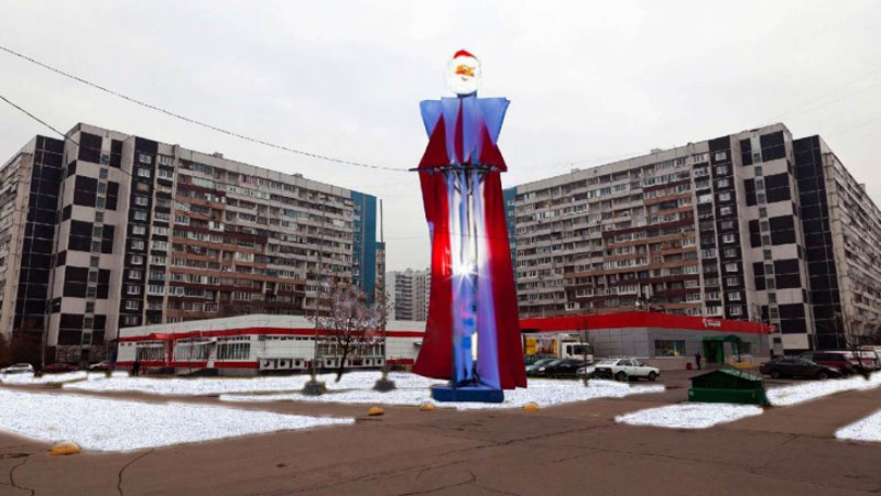 Четыре шара разного диаметра из металлических трубок со световыми гирляндами установят на фонтане на площади Юности до 15 декабря. Ещё на улицах Зеленограда появятся трехметровые Деды Морозы и «коробки с подарками».