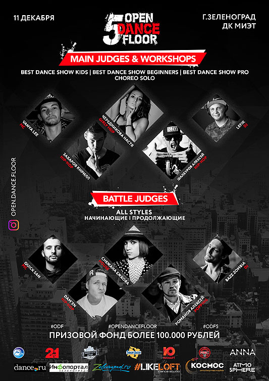 11 декабря в Зеленограде в ДК МИЭТ впервые пройдет 5-й фестиваль современного танца Open Dance Floor.