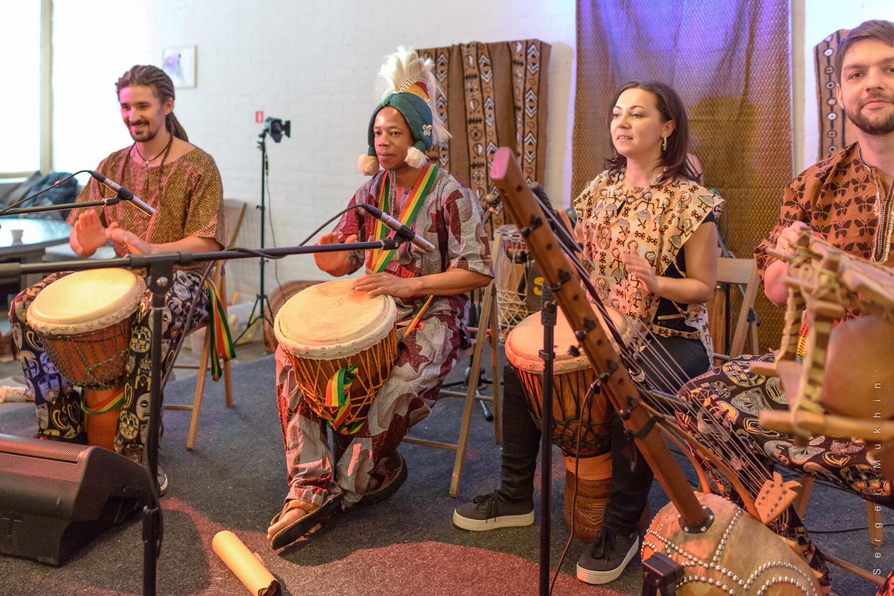 Праздник начнется в 16:00. В это время самые маленькие (дети до 10 лет) встретятся с шаманами, вернут голоса птицам, научаться играть на барабанах полиритмическую музыку и петь в гриотском стиле. В программе участвует группа Sofoli: музыканты исполняют на этнических инструментах традиционные ритмы, песни и танцы народа Малинке (Западная Африка). А это значит, что будут магические барабаны и зажигательные ритмы. Гостям праздника предлагают погрузиться в атмосферу настоящей африканской деревни.