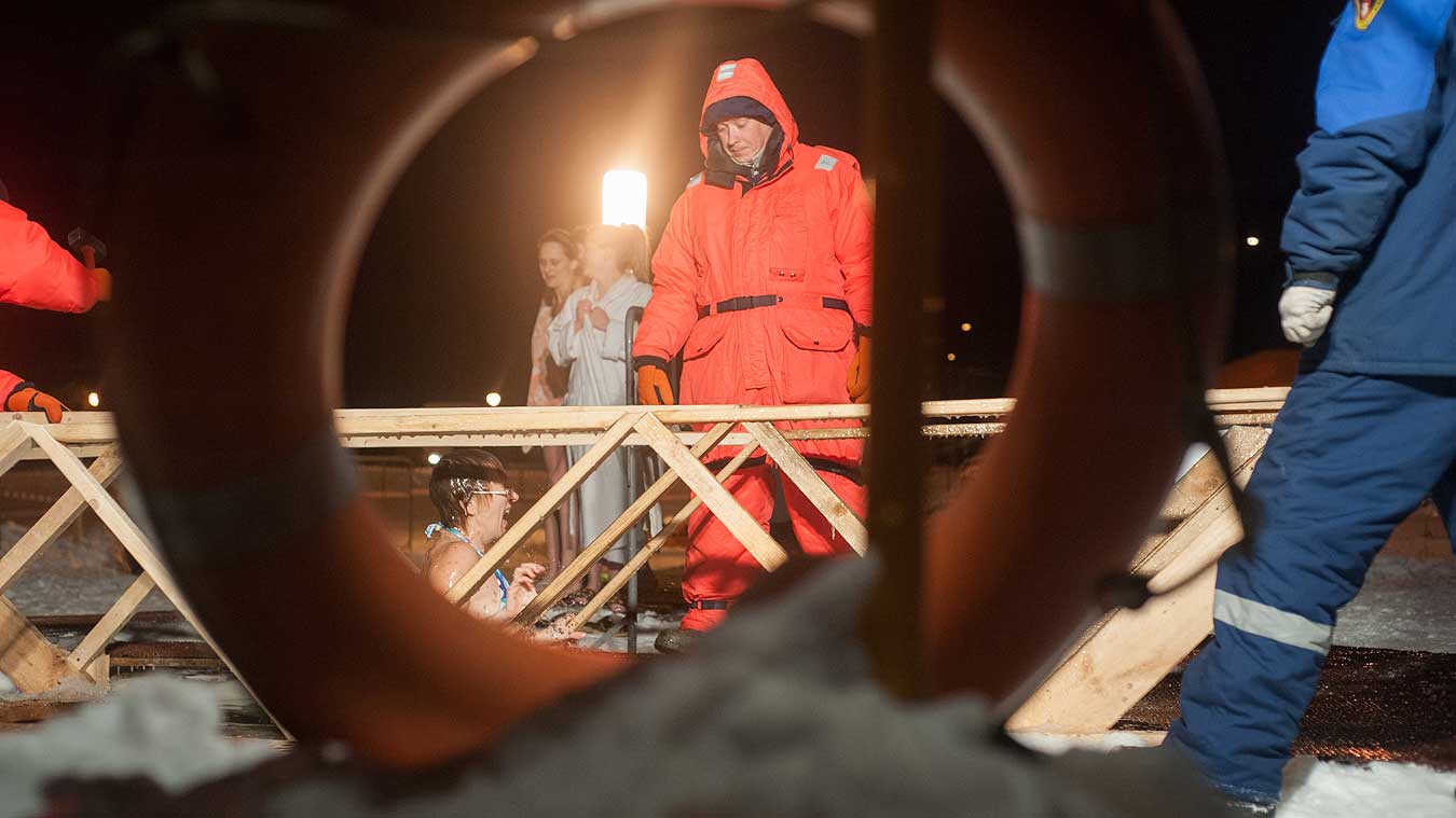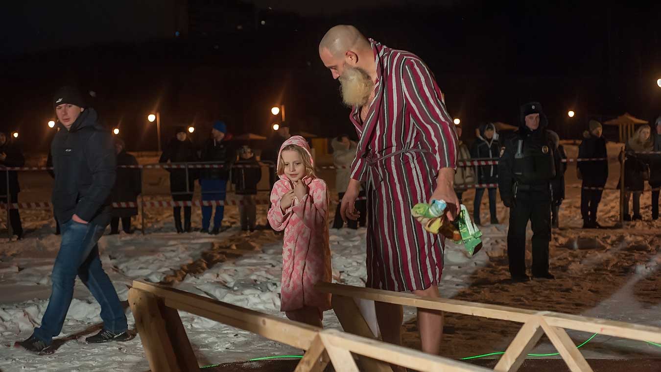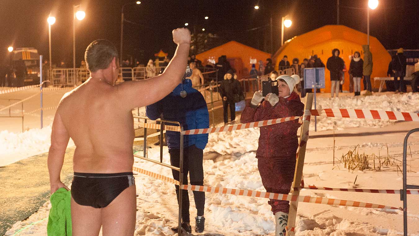 В этом году меньше «зрителей» — тех, кто пришёл не купаться, а просто посмотреть, за компанию. В прошлом году на Черное озеро в крещенскую ночь пришли 3328 человек, а искупались в проруби 1720. А в этом — только 500 сопровождавших на оба водоема.
