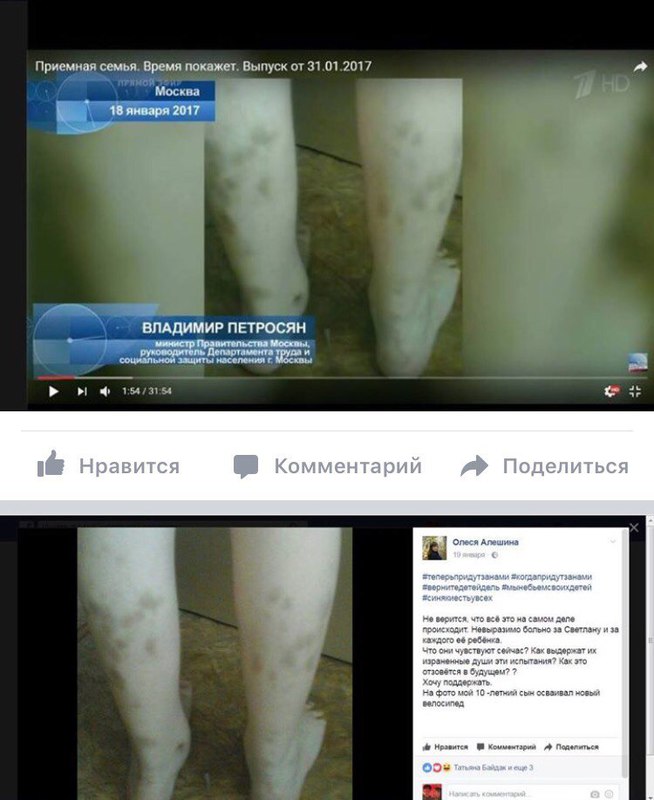 На верхнем фото скрин репортажа, спровождаемый звонким голосом главы соцзащиты - Петросяниусом о том "что не синячёк а многочисленные побоииии, гематомы...!"