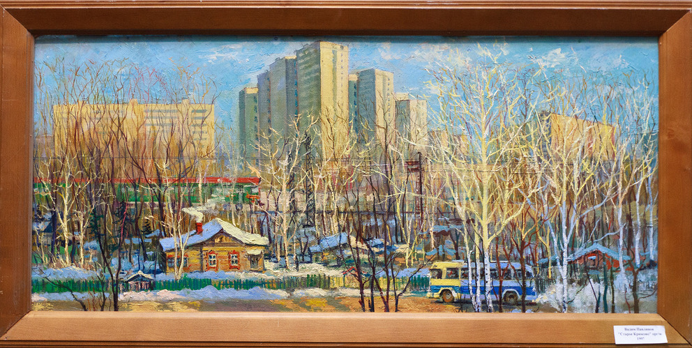 — Я работал в бывшей 4-й крюковской школе, потом она стала №897. Прямо из окна сделал набросок — нарисовал остатки деревни напротив. Теперь на этом месте крюковский универмаг", — рассказал Zelenograd.ru о создании картины «Старое Крюково» Вадим Дмитриевич.