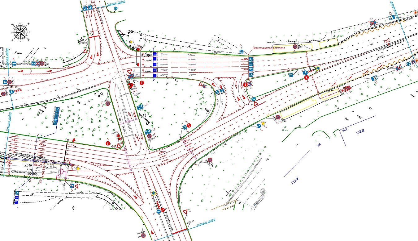 Перекресток возле Крюковской площади — пересечение Панфиловского проспекта, Крюковской эстакады, Солнечной аллеи и улицы Гоголя — считается одним из самых сложных в Зеленограде: не сразу понятно, кому и как ехать. Решено четко обозначить левый поворот с Крюковской площади на улицу Гоголя и эстакаду. Он разрешен знаками, но при этом здесь сплошная дорожная разметка, запрещающая маневр. Будут сделаны прямыми непересекающиеся траектории перекрестка, пересекающиеся будут разделены, здесь разметят направляющие островки и четко обозначат все траектории движения. Одновременно изменятся фазы светофора для улучшения пропускной способности перекрестка.