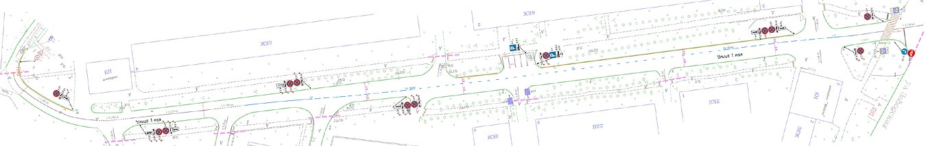 На улице 1 Мая сплошную разметку сделают прерывистой. Там остро не хватает парковочных мест, дорога заставлена машинами, из-за чего водители вынуждены при движении в сторону Привокзальной площади выезжать на встречную полосу, пересекая сплошную. Проектом предусмотрен сдвиг осевой линии разметки максимально к противоположному от сложившейся годами парковки.