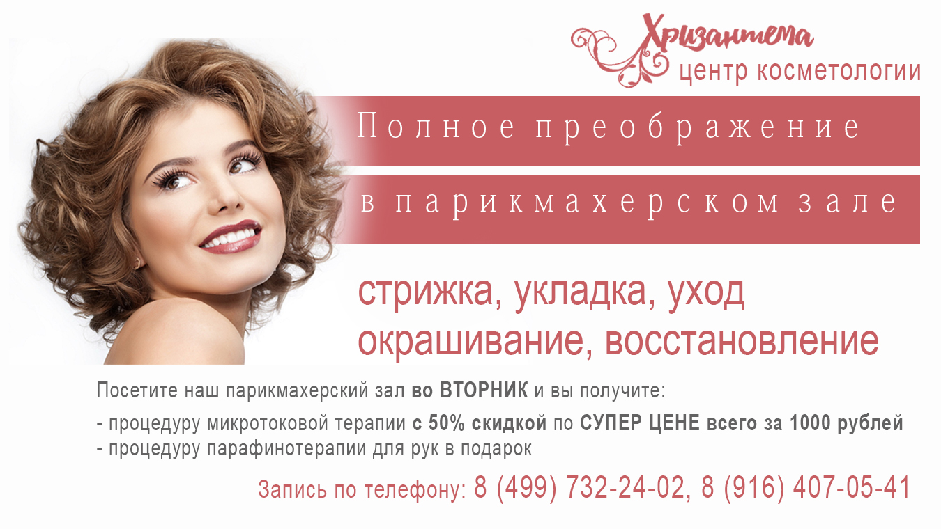 Посетите наш парикмахерский зал во ВТОРНИК.