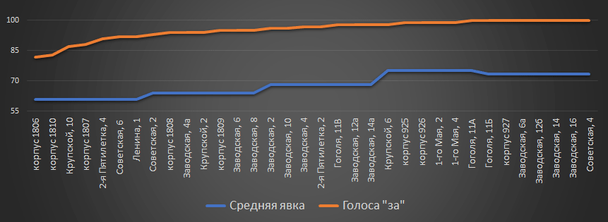 Голосуют достаточно активно. За две недели до окончания голосования явка в среднем составила 66 процентов. При этом для домов с высокой явкой наблюдается в среднем и большая доля голосующих за снос. И наоборот — в домах с низкой явкой больше доля голосующих против. Впрочем, это не означает, что сторонники сноса голосуют более активно — возможно, никакой связи здесь нет.