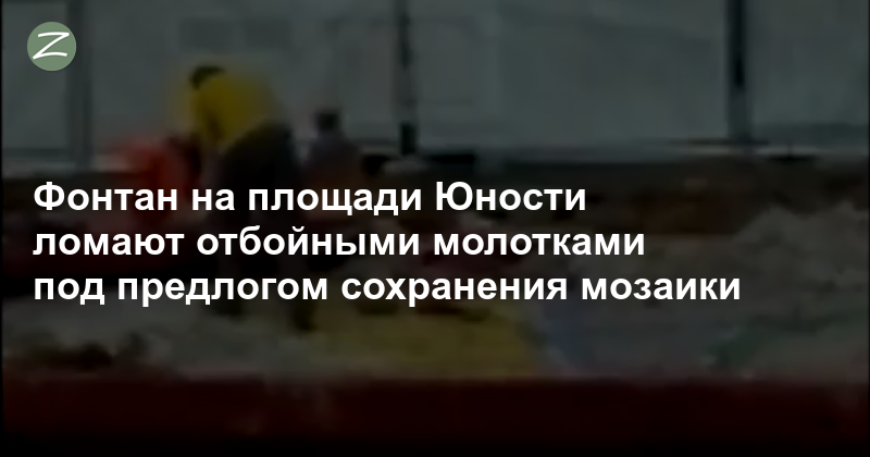 Во вторник около 17 часов рабочие, ведущие реконструкцию площади Юности, возобновили снос фонтана. Отбойными молотками долбят уже не бетонный бортик, как в прошлый четверг, а саму мозаику.