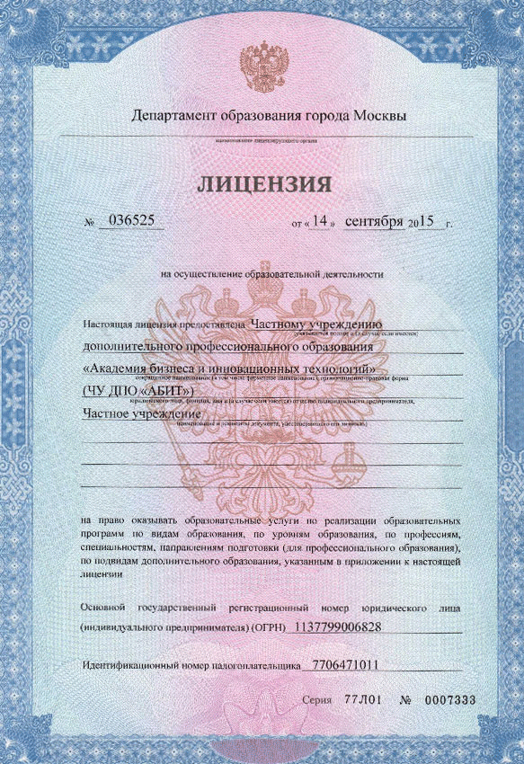 Учебный центр ведет образовательную деятельность, но основании лицензии № 036525 от 14 сентября 2015 года (серия 77Л01 № 0007333).