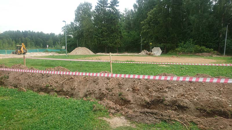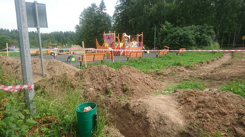 Накануне выходных вся территория возле Чёрного озера — пляж и обе детские площадки — огорожены. За ограждением уже идут работы. Доступ к воде открыт и некоторые отдыхающие располагаются прямо рядом с бульдозерами. Впрочем, с детьми так лучше не делать — всё уже довольно сильно перекопано. Этим летом отдохнуть здесь уже не получится — ремонт закончат только в ноябре.