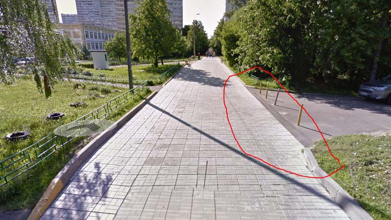 В ту же субботу другой собеседник Zelenograd.ru стал свидетелем, как некая машина вишнёвого цвета выехала на свежую брусчатку с той самой асфальтовой дорожки. Правда, тут же сдала назад, разрушив тротуар. Любопытно, что прежде в этом месте стояли ограничительные столбики, преграждающие въезд на пешеходную тропинку. Сейчас там нет ни столбиков, никакой другой элементарной преграды хотя бы в виде сигнальной ленты.