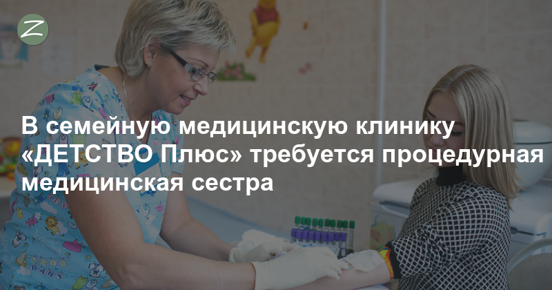 В семейную медицинскую клинику «ДЕТСТВО Плюс» требуется медицинская сестра с опытом работы процедурной медсестрой.