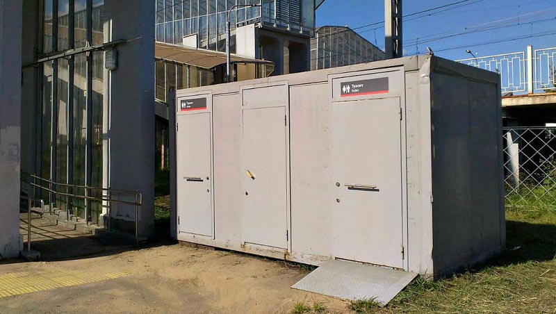 Туалет с двумя кабинками появился при выходе из надземного перехода со стороны поселка Алабушево, рядом с платформой в сторону Москвы. Его поставили по просьбе пассажиров.