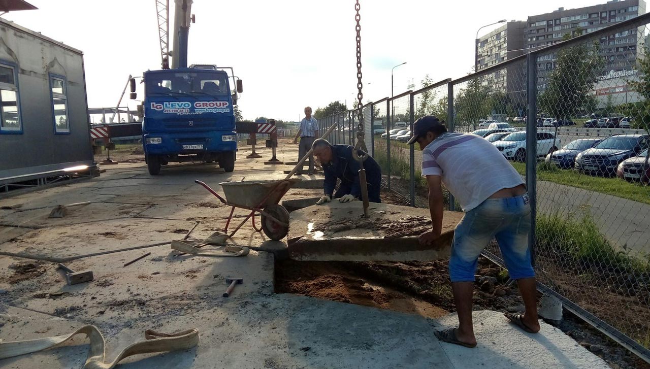 Часть бетонных плит город безвозмездно передал для устройства дорожного покрытия у временного храма Георгия Победоносца, который строят в 17 микрорайоне. Плиты старые, некоторые со сколами, но еще вполне годные.