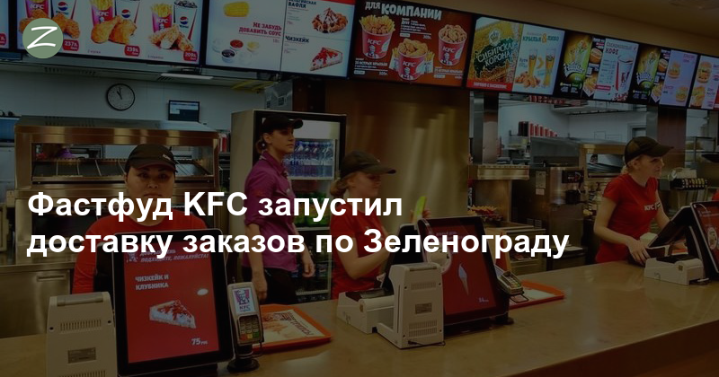 Заказ еды из меню ресторана быстрого питания KFC можно сделать по телефону 8(800)707-5477 (звонок бесплатный), на сайте kfc.ru или через мобильное приложение KFC (Android, IOS). В Зеленограде и окрестностях действует шесть ресторанов KFC, доставку осуществляют из четырёх: KFC в ТД «Панфиловский», в ТЦ «Атлас» (Новокрюковская улица), в ТЦ «Энергия» (Андреевка) и в ТРЦ «Зеленопарк».