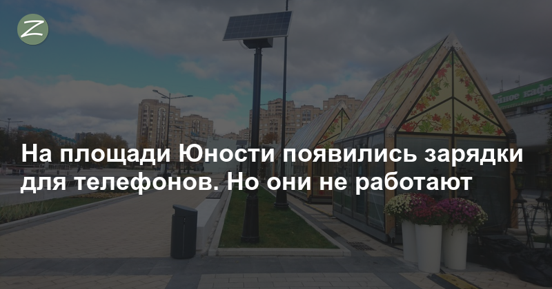 На площади Юности поставили несколько столбов с с USB-зарядками. Питаются зарядки от солнечных батарей. На каждом столбе по два влагозащищенных гнезда для зарядки, полочки на которые можно положить телефон, под полочками крючок для сумок. Основная проблема в том, что зарядки не работают.