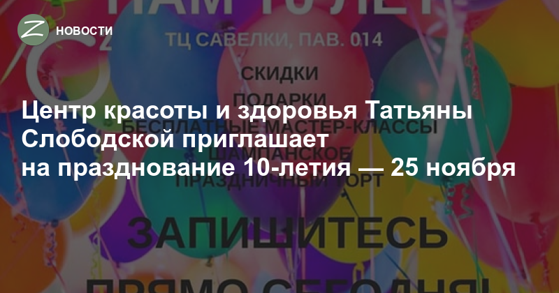 Дорогие друзья! Мы приглашаем вас 25 ноября на празднование 10-летия Центра красоты и здоровья Татьяны Слободской!