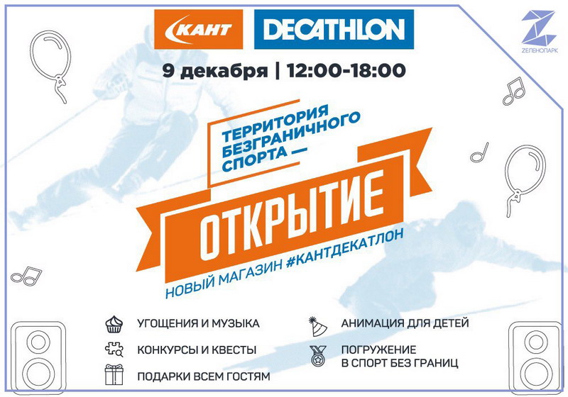Пилотный магазин в Зеленограде собираются открыть с помпой. С 12:00 в «Зеленопарке» начнётся сбор гостей, в 13:00 руководство «Канта» и «Декатлона» произнесут приветственные слова. С 13:30 до 14:00 гостям покажут экипировку премиум-класса. С 14:00 все желающие смогут присоединиться к фуршету, посмотреть новые коллекции спортивных товаров и пообщаться со спортсменами. Организаторы запланировали также активности, квесты и конкурсы для взрослых и детей, всем гостям обещают дарить подарки .