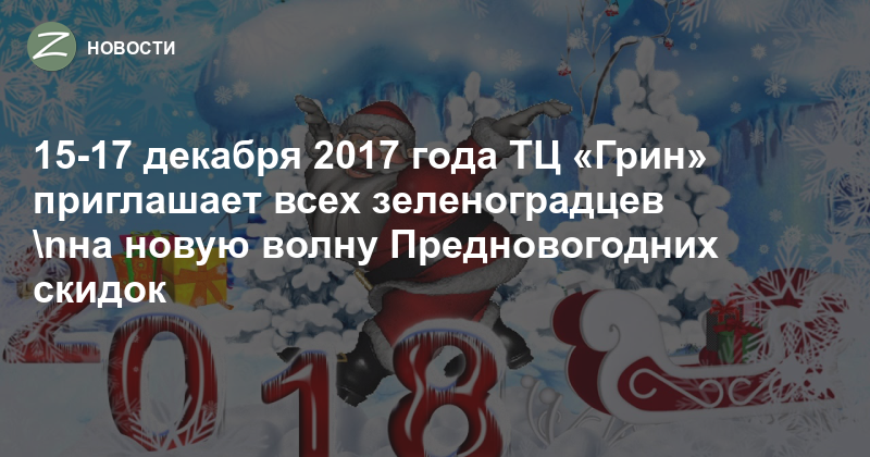 16 декабря 2017 года — приходите в ТЦ «Грин» всей семьей с детьми, вас ждет поздравление от Деда мороза, музыка, подарки, а также интересные мероприятия для любителей веселья, шопинга и творчества.