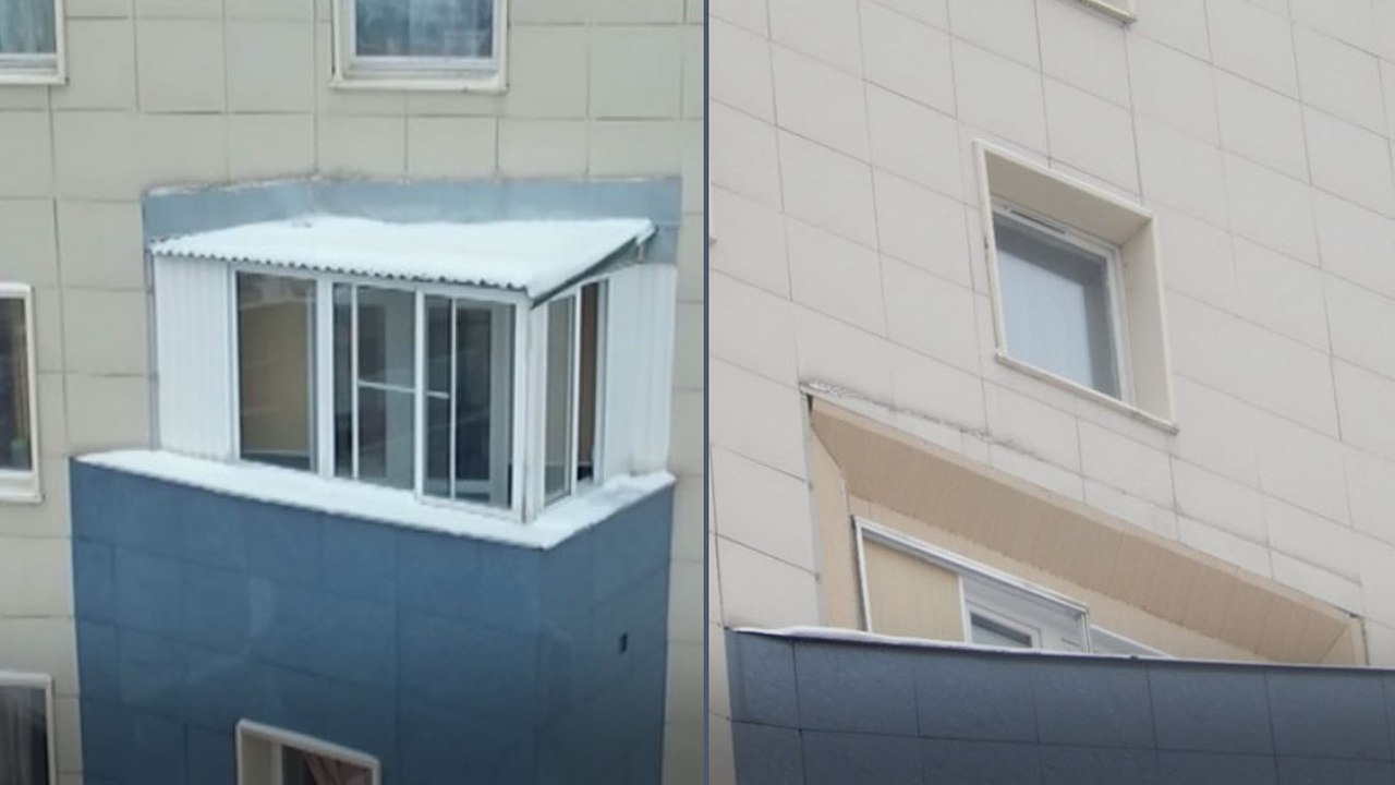 Корпус 251 построили 11 лет назад по индивидуальному проекту. Жильцам квартиры на 14 этаже достался открытый балкон — без крыши, — который они застеклили и сделали над ним крышу. Спустя восемь лет выяснилось, что это самострой и перепланировка. По решению суда хозяева квартиры сами сломали пристройку.