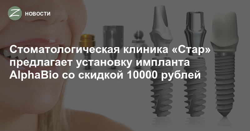 С 1 по 31 марта стоматологическая клиника «Стар» предлагает Вам воспользоваться уникальным предложением — скидка 10000 рублей на установку любого имплантата AlphaBio (Израиль).