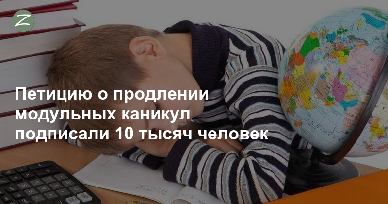 Родительская петиция «Изменить принятый на 2018-2019 учебный год график модульных каникул на старый» появилась после того, как столичный департамент образования утвердил новые сроки каникул при модульной системе обучения («5+1») на следующий учебный год. Каникулы сократились до трёх-четырёх рабочих дней — со среды до воскресенья или до понедельника. Родители просят вернуть полноценную каникулярную неделю и напоминают, что голосовали за модульный режим обучения в формате «пять недель учёбы — неделя отдыха». Петицию подписали почти 10 тысяч человек.