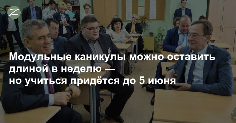 «Школа самостоятельно может увеличить продолжительность отдыха при модульном режиме, но это означает и одновременное увеличение продолжительности учебного года — до 5 июня. В случае готовности родителей и учащихся к такому решению, им необходимо выступить с этой инициативой на управляющем совете своей школы», — сообщил председатель межрайонного совета директоров образовательных организаций Зеленограда, директор школы 1194 Анатолий Ващилин.