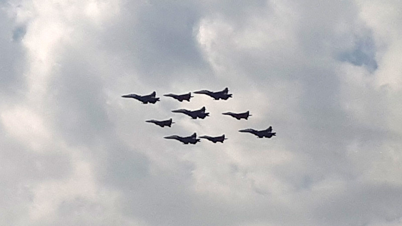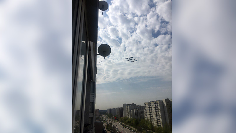 4 мая состоялась первая репетиция воздушного парадного строя перед Днем Победы. Около 11 часов утра военная авиация рассекала небо над Зеленоградом по пути на Красную площадь. А горожане традиционно запечатлели это красочное событие.