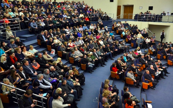 Работники префектуры, управ, социальных служб, поликлиник, школ, коммунальных служб и прочие госслужащие, а также общественные советники и члены совета ветеранов в этот момент уже сидели в зале. «Уже нет мест, — отметили в штабе Собянина (в 17:00, то есть, за час до начала встречи). — К сожалению, в Зеленограде нет зала на тысячу мест».