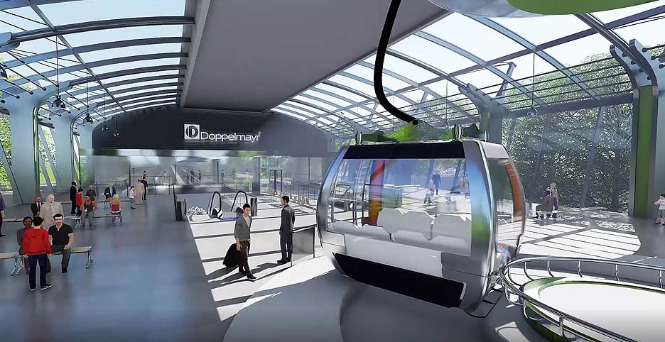 Для соединения канатной дороги с метро постоят входные павильоны с наземными галереями, ведущими на платформы станций метро. Канатную дорогу поставят на нескольких опорах рядом с Ленинградским шоссе и улицей Свободы.