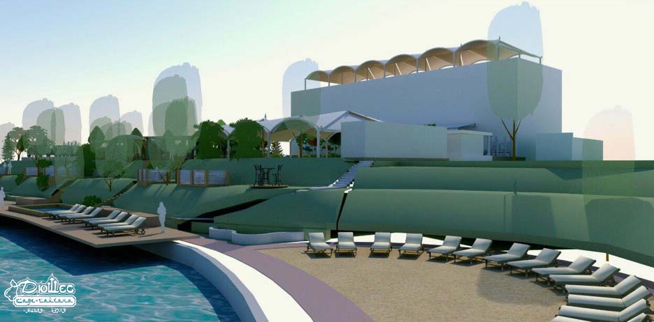 В трехэтажном развлекательном центре откроют банкетный зал на 200 персон, конференц-зал, будет открытая кухня трех видов, винотека, кондитерская, развлечения для детей. К лету, кроме пристани с лодками и пляжа, возле здания поставят шатер для свадеб, беседки, устроят зону барбекю и детскую игровую зону.