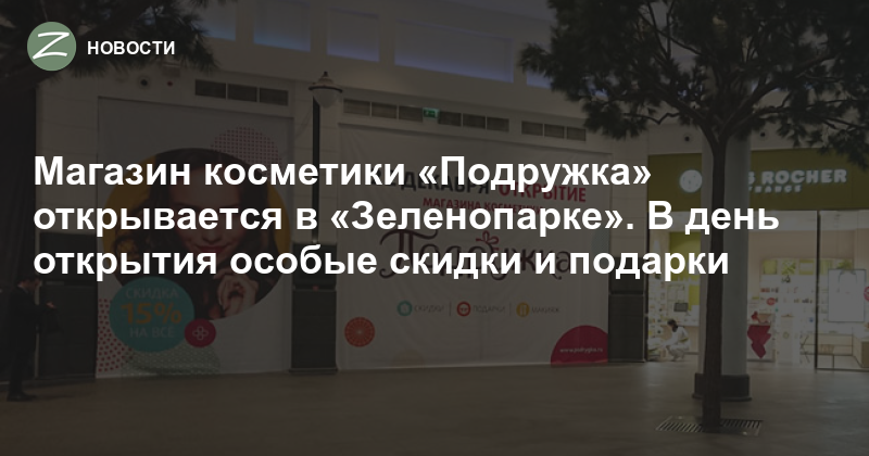 Новый магазин косметики «Подружка» откроется в торгово-развлекательном центре «Зеленопарк» в субботу, 22 декабря, в 10 утра.