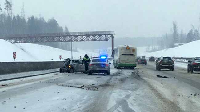 Авария произошла на участке трассы М-11 между Черной Грязью и Зеленоградом около 9 утра 4 марта. Два левых ряда заняла пара легковых автомобилей, которые «зацепились» на дороге. В крайнем правом ряду стояла машина ДПС, оформлявшая дорожно-транспортное происшествие. Автобус ехал в этой же полосе в сторону Москвы. Заметив патрульный автомобиль с включенными проблесковыми маячками метров за двадцать, водитель автобуса решил экстренно перестроиться через несколько полос во второй левый ряд. Там он и врезался в стоящую Kia Rio, рассказал очевидец в сообществе «ЗелАО AUTO» во «ВКонтакте».