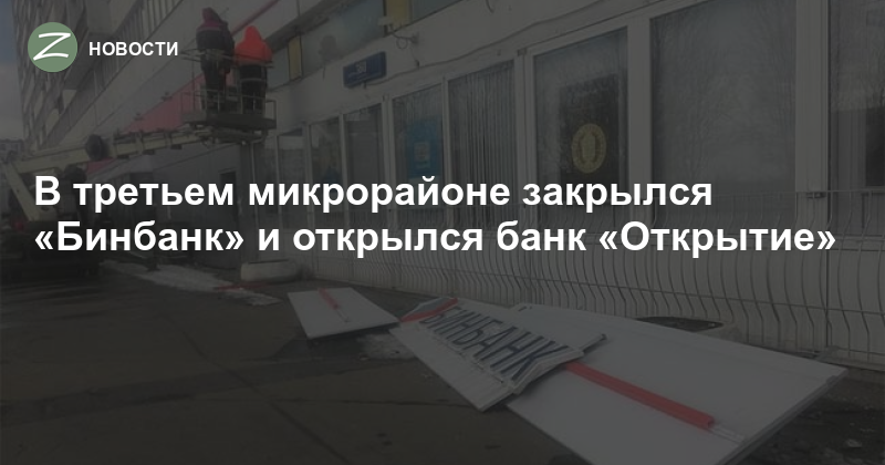 Смена вывески одного банка на другой произошла во «Флейте», корпусе 360. Вывеску «Бинбанка» сняли, а вместо неё повесили вывеску банка «Открытие».