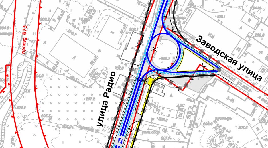 На схеме проекта планировки обозначен проезд 673 — он проходит почти параллельно улице Радио. Это проектируемая новая дорога, которую планируют построить в рамках реновации — сноса старого жилья в 19 микрорайоне и строительства нового.
