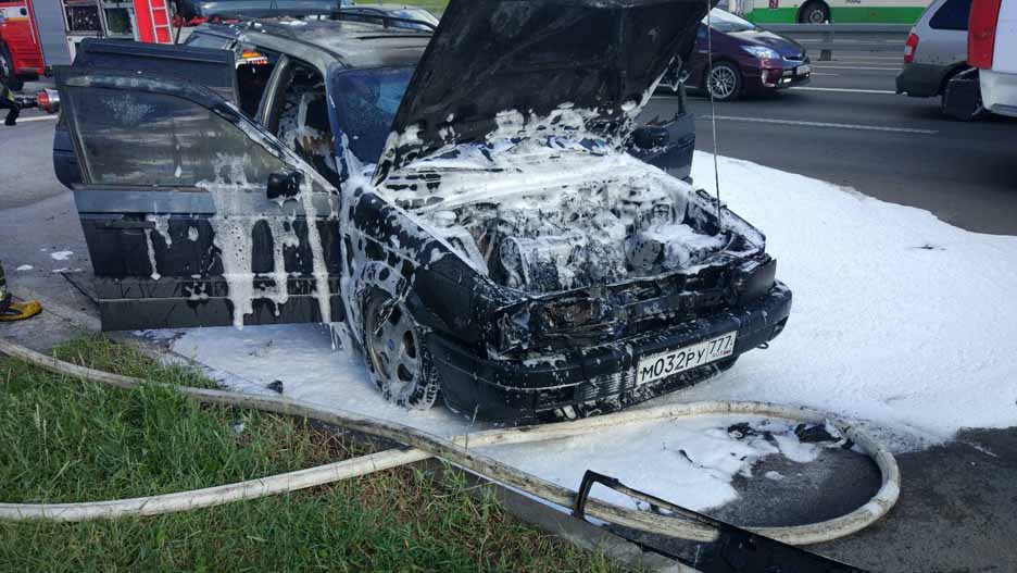 Инцидент произошел на улице Логвиненко напротив корпуса 1405 перед въездом в Андреевку. Прибывшие на место пожарные потушили машину за три минуты, хотя, судя по видео, сначала возникли какие-то проблемы с напором воды из автоцистерны.