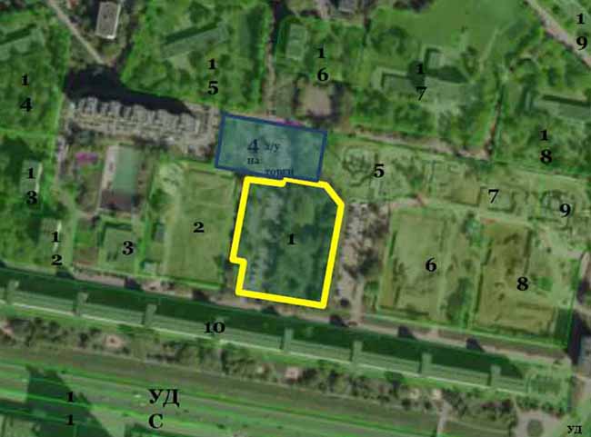 На сдаваемых под застройку участках — пешеходные дорожки, оставшиеся деревья, кусты, газоны, большая собачья площадка. Рядом строят бульвар и вырубают деревья.