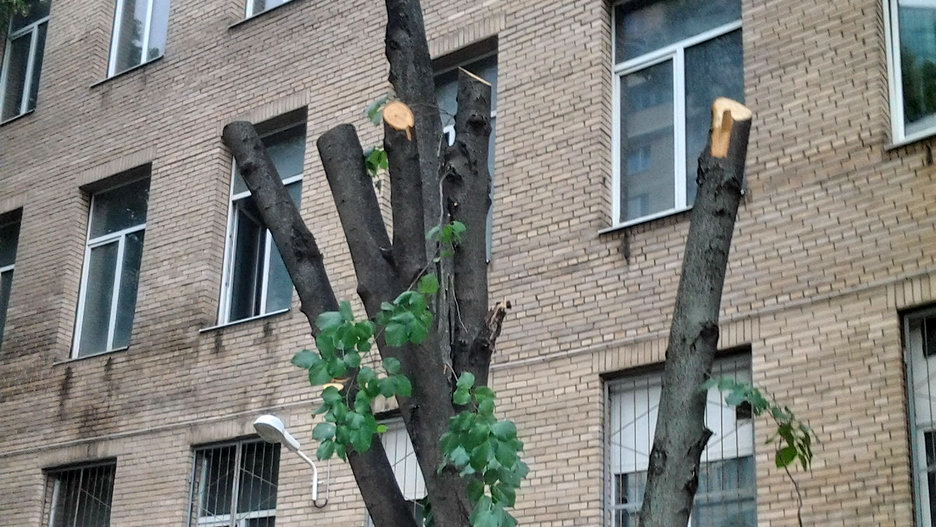 «Летом мы получили предписание [департамента] на удаление трех деревьев и санитарную вырубку 12 стволов в связи с повреждением вредоносными насекомыми», — ответил на вопрос о законности вырубки Илья Чехлов от имени собственника здания на прошедших в четверг публичных слушаниях. Вероятно, имея в виду под вырубкой санитарную обрезку.