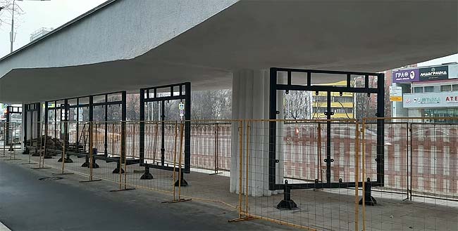 Остановочные павильоны «Дом быта» и «Кинотеатр Электрон» построили в 60-х годах прошлого века и сохранили при реконструкции Центрального проспекта. Теперь на них начали возвращать остекление и лавочку, которые были раньше.