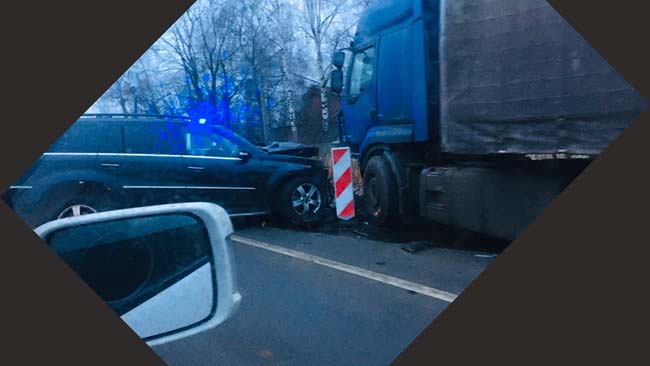 Со слов водителя фуры, GL обгонял по встречке поток машин, двигаясь в направлении Ленинградского шоссе, и, не тормозя, врезался в его большегруз, следовавший в сторону Фирсановки (после публикации стало известно, что эта информация, возможно, не соответствует действительности). В результате ДТП пострадали водитель кроссовера и двое детей-пассажиров (девочки примерно 9-11 лет), находившихся в этом авто.
