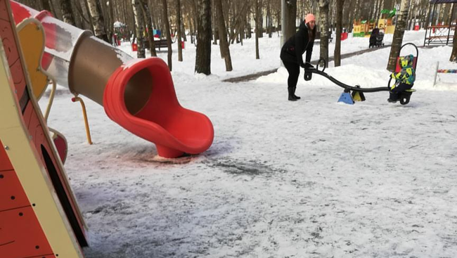 Раньше во время гололёда дорожки на площадке посыпали песком, рассказала «Зеленоград.ру» мама ребёнка. А сейчас почему-то нет. В последние зимы за детскими площадками хорошо следили: убирали снег с дорожек между скамейками и игровыми элементами. Но в этом году снега мало, убирать особо нечего. Обрабатывают ли при этом дворники детские площадки реагентом или песком, неизвестно.