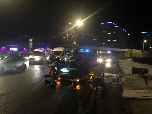 Из машины 61-летней автовладелице помогли выбраться прибывшие на место пожарные из 11-й пожарной части. Женщину передали медикам, которые осмотрели её на месте. Травм у неё не зафиксировали, только ушибы. От госпитализации пострадавшая отказалась.