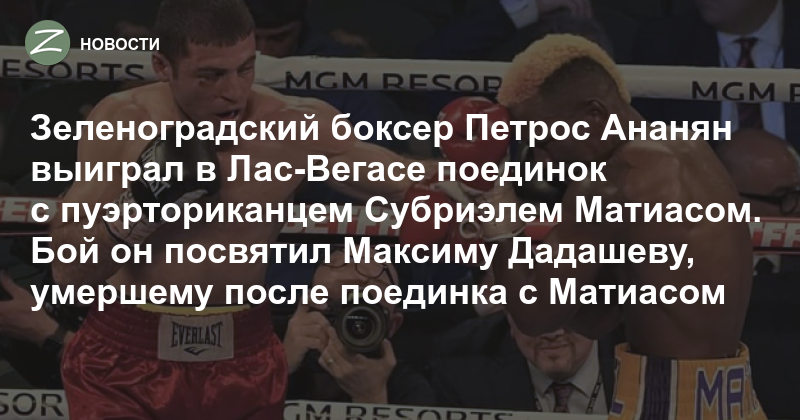 Российский боксер Петрос Ананян выиграл бой в Лас-Вегасе у пуэрториканца Субриэля Матиаса, который до сих пор оставался непобедимым. В 2019 году после боя с ним от травм умер боксер Максим Дадашев, и эту победу Петрос посвятил погибшему соотечественнику.