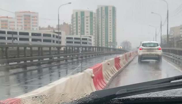 В «Гормосте» уверяют, что работают круглосуточно, а фотографии перекрытой полосы без единого рабочего объясняют погодными условиями. Видимо, технология не позволяет работать в дождь. Но полоса при этом стоит перекрытая. Почему заказчики и исполнители работ не предусмотрели навес на этот случай, неизвестно, — видимо, просто не подумали о последствиях перекрытия даже одной полосы.