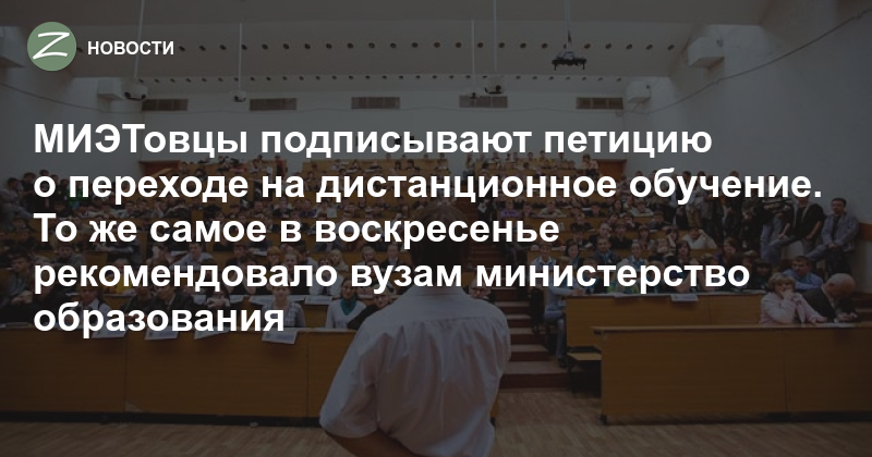 В воскресенье, 15 марта, студенты и аспиранты МИЭТа выступили с петицией о временном переходе на дистанционное обучение, которая адресована руководству вуза и министерству здравоохранения РФ. Миэтовцы обеспокоены распространением коронавирусной инфекции (COVID-19) в Москве.