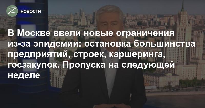 Временно приостанавливается работа практически всех предприятий и организаций, кроме органов государственной власти, медицинских организаций, предприятий пищевой и медицинской промышленности, производителей средств индивидуальной защиты, ключевых предприятий оборонки, космоса, атомной промышленности и критически важной инфраструктуры. Перечень видов деятельности предприятий, которые должны приостановить деятельность, приведен в приложении №3 указа мэра.